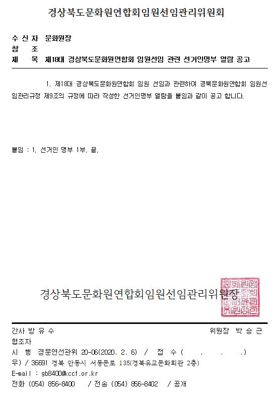 제18대 경상북도문화원연합회 임원선임 관련 선거인명부 열람 공고